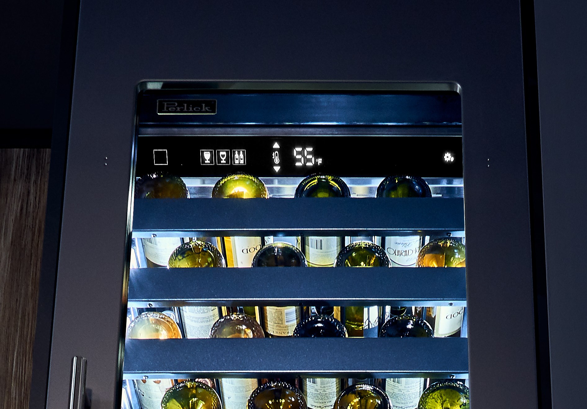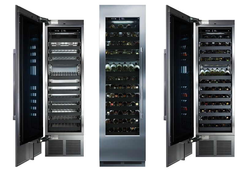 - Heavy-duty, full-extension, soft-closing wine shelves; Shelves are black polymer dipped to provide vibration protection and protect labels from abrasion