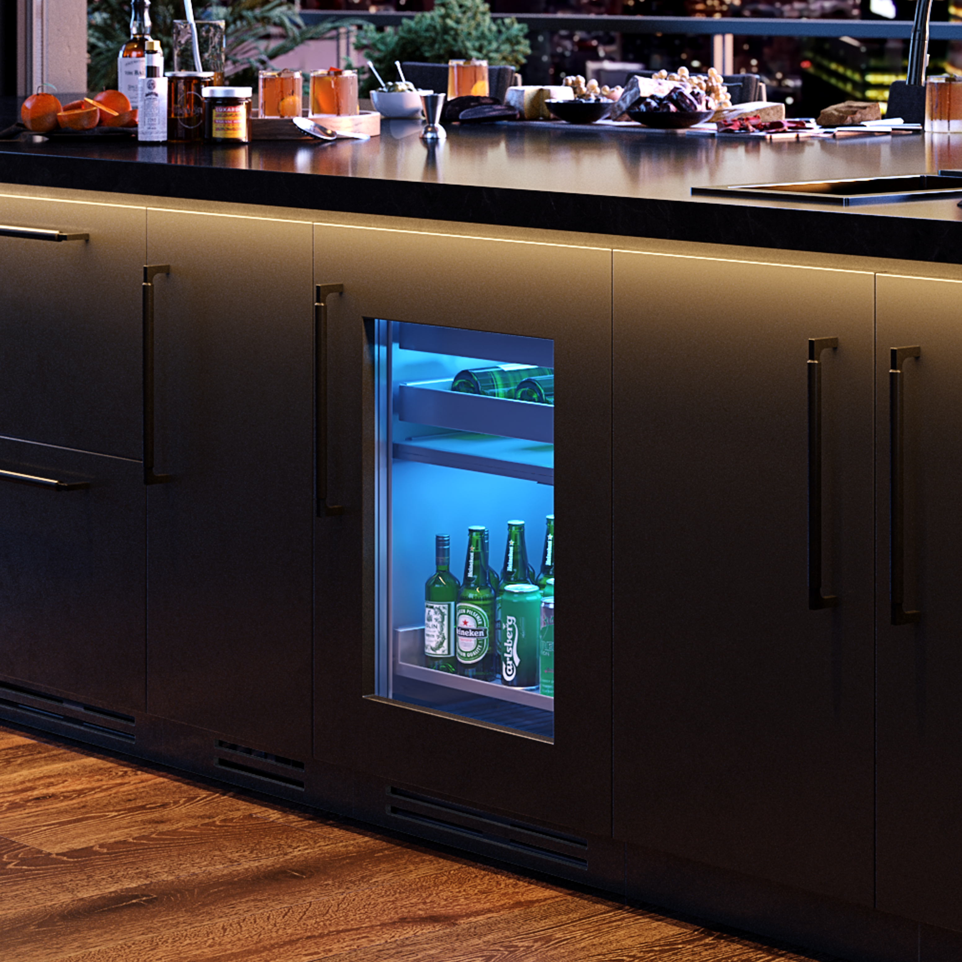 G5 units come panel-ready for full design customization, accommodating either custom millwork panels or Perlick stainless-steel panels for a seamless built-in look.