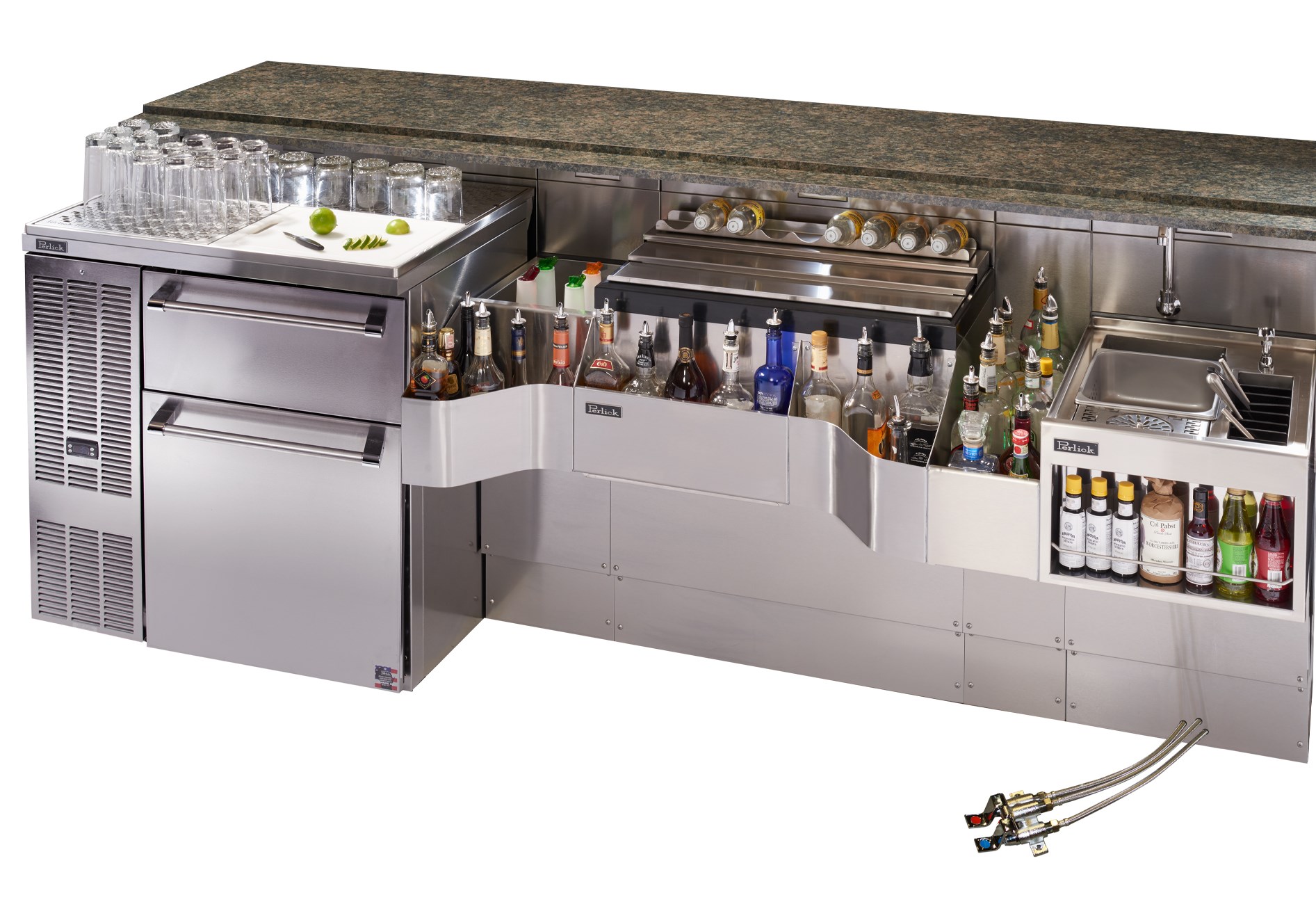 - Perlick exclusive, rounded speed rail design allows bartender to be closer to their work counter and guests.