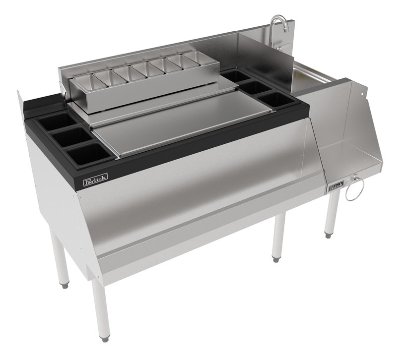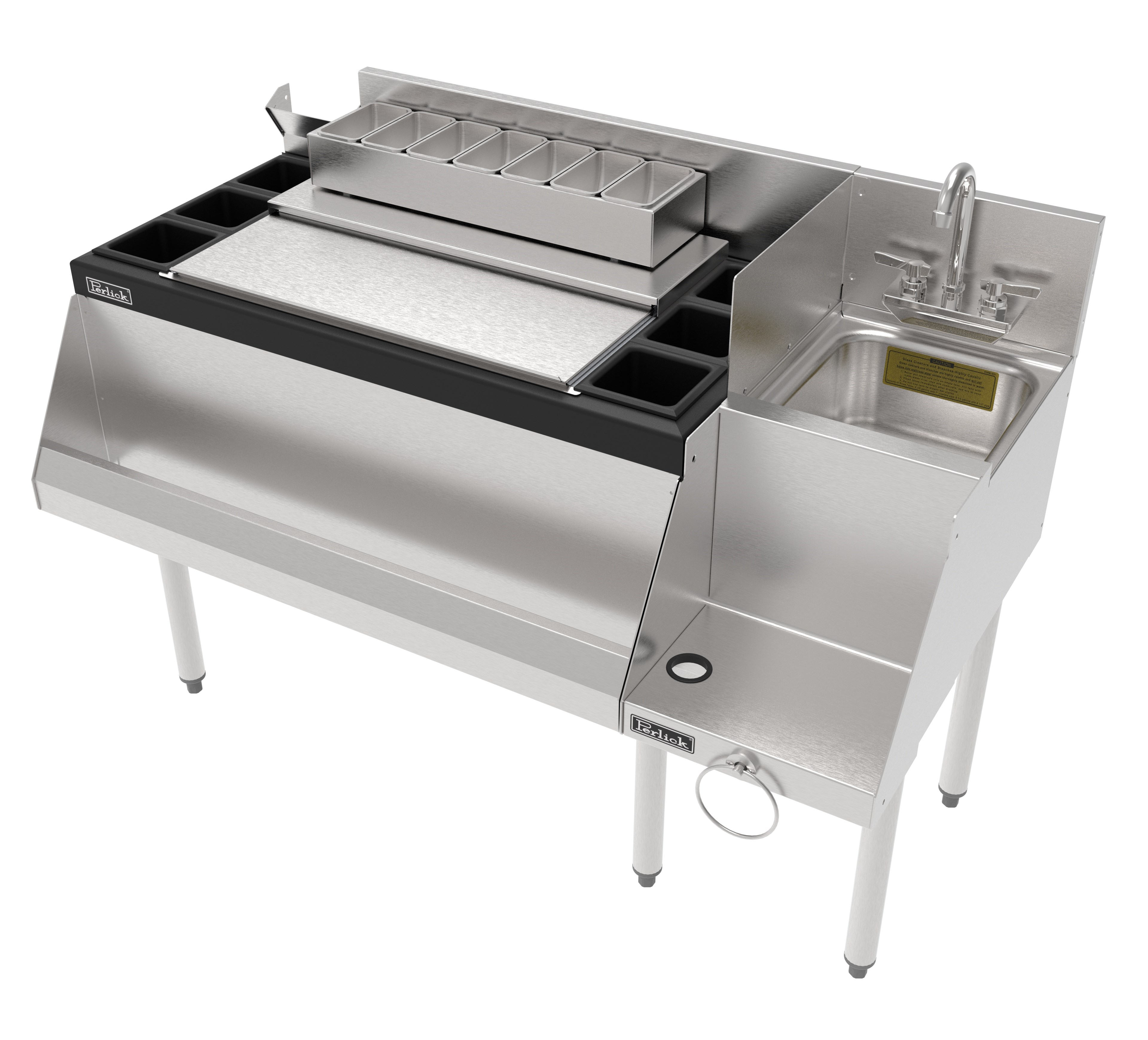 Fully assembled Cocktail Service Stations in lengths from four to six feet make it easy to select a fully accessorized stations to meet your cocktail production needs. Ice Chest has Patented Concealed Cold Plate for improved sanitation. Blender Station with Deep Drawn Stainless Steel Bowl provides large rounded contours for increased sanitation. Liquor Display (select models) has a one-piece, continuous step for easy cleaning.